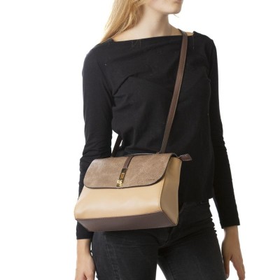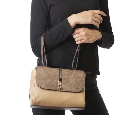 Bolso mediano con material sintético con abertura de metal